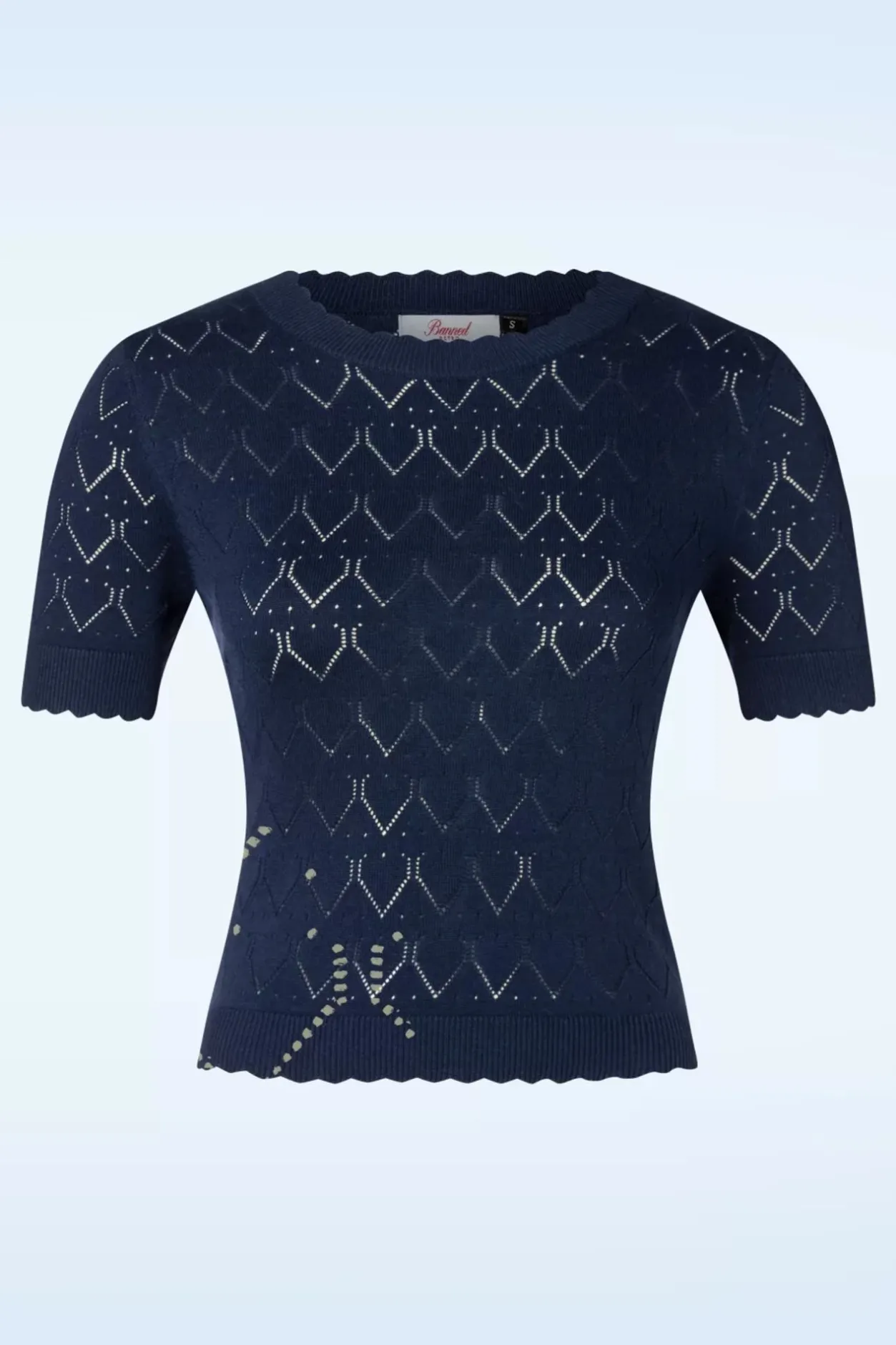 De Sweet Gardina Jumper In Navy Maakt Met Iedere Outfit Een ‘Perfect Match’! Ze Heeft Een Ronde Halslijn, Korte Mouwtjes En Geschulpte Ribboordjes. Uitgevoerd In Een Zachte, Fijngebreide Mix Van Viscose En Katoen En Is Voorzien Van Een Opengewerkt Ajour Patroon. De Combinatiemogelijkheden Zijn Eindeloos!