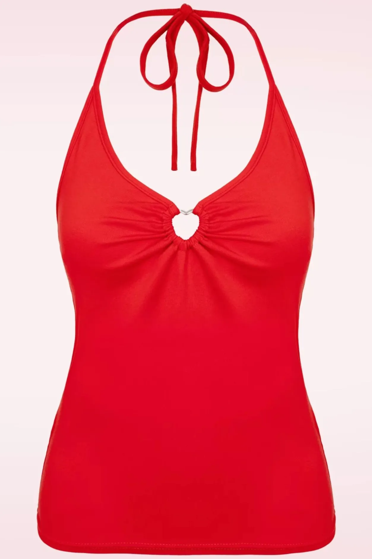 Nieuwe Lente/Zomercollectie ~ Tot Over Onze Oren Verliefd Op Deze Top! Ze Heeft Halterstijl Bandjes En Een Hartvormige Keyhole Die Ons Hartje Op Hol Laat Slaan ;-). Uitgevoerd In Een Stretchy, Lipstickrode Katoenmix Die Heerlijk Draagt. L-O-V-E!