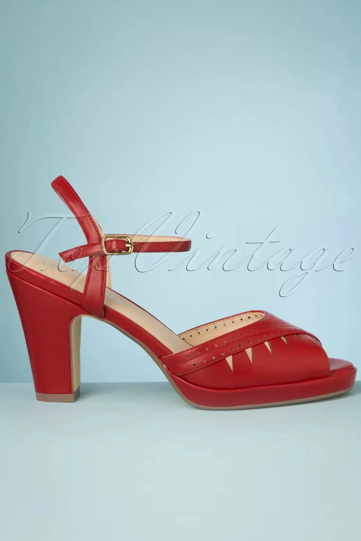 Stap Stijlvol Het Nieuwe Seizoen In Met Deze 50S Aria Sandals In Red Aan Je Voetjes! High Heeled Sandaaltjes Uitgevoerd In Dieprood ‘Faux’ Leder, Afgewerkt Met Een Peeptoe, Sierlijke Uitsneden, Een Verstelbaar Enkelbandje, Een Subtiel Plateau En Een Stevige, Hoge Hak. De Zachte Binnenzool Van Leder Zorgt Bovendien Voor Een Aangenaam Draagcomfort. Tijd Om De Eerste ‘stap’ In Juiste Richting Te Zetten Door Deze Beauties In Je Winkelmandje Te Klikken! 😉