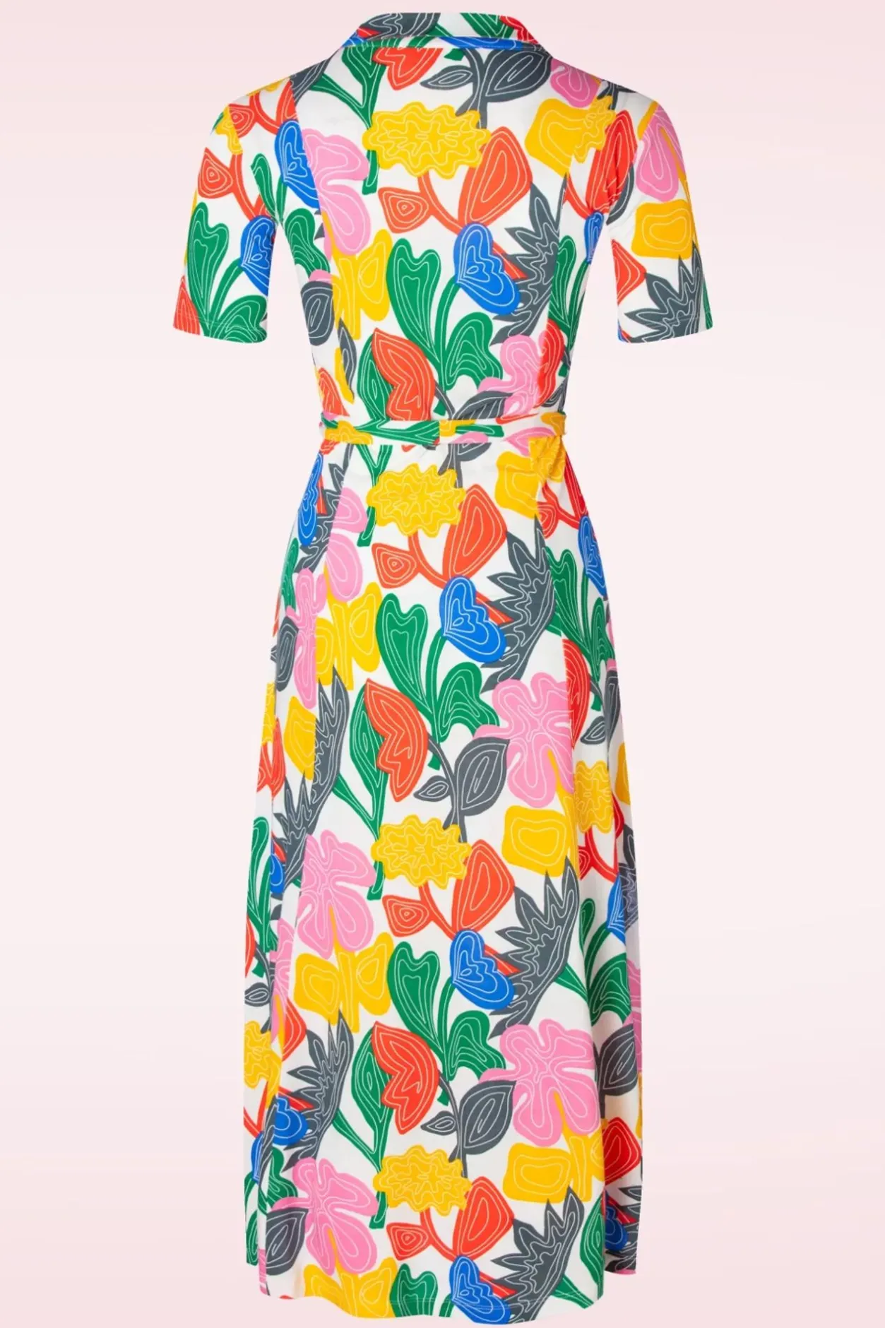 Genieten Van Die (Eerste) Zonnestralen Doe Je In Deze Geweldige Flowy Jurk. Uitgevoerd In Luchtig En Soepele Viscose Met Een Kleurrijke Grafische Bloemen Print.