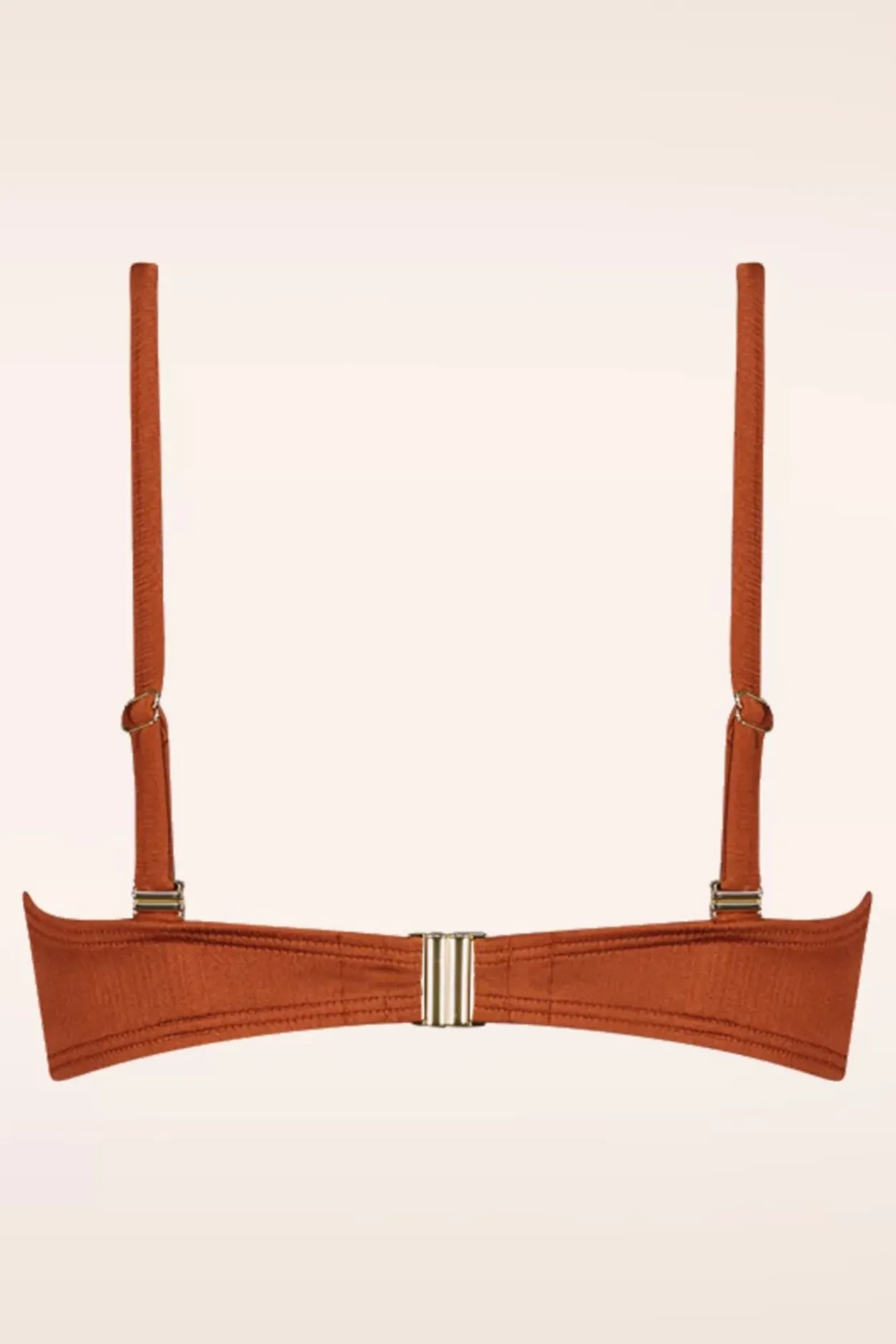 ”This Treasure Should Not Stay Buried!” Laat Jezelf Zien In Deze Bikini Top Met Beugels En Padded Cups Die Zorgen Voor Steun En Je Voorzien Van Een Prachtig Decolleté. Je Kunt Deze Top Op Meerdere Manieren Dragen; Met Schouderbandjes, Gekruist Op De Rug Of Als Halter. Afgewerkt Met Plooitjes En Goudkleurige Details. Uitgevoerd In Een Comfy, Perfect Aansluitend Cederbruin Stofje Met Een Oogverblindende Shimmer Voor Een Beetje Glamour In The Sun!
