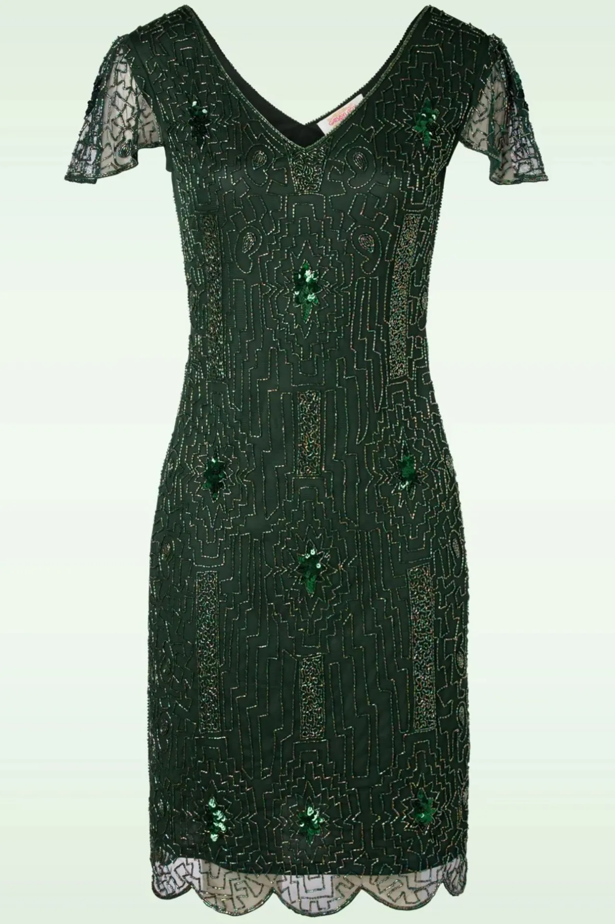Deze 20S Downton Abbey Flapper Dress In Green Is Een Prachtige Met De Hand Bewerkte Reproductie Van De Elegante Flapper Dresses Van De Jaren 20! Je Zou Zo Mee Kunnen Spelen In Downton Abbey Wanneer Je Deze Jurk Draagt… Of Beleef Je Eigen Avontuur Gatsby Style ;-). Deze Showstopper Is Bezaaid Met Minuscule, Glimmende Glaskraaltjes En Donkergroene Pailletten Die Er Met De Hand Opgestikt Zijn, Wow! De Top Heeft Een Diepe V-Hals, V-Rug En Als Kers Op De Taart Semi-Doorschijnende Kapmouwtjes. Deze Beauty Heeft Een Zwierig Loose-Fit Model Zodat Zij Precies Zit Hoe Een Echte Flapper Dress Hoort Te Zitten. Uitgevoerd In Een Stretchy, Donkergroen, Semi-Doorschijnend Stofje, Geheel Gevoerd Voor Extra Draagcomfort En Afgewerkt Met Een Geschulpte Bies Langs De Onderkant. Let’s Go Back To The Roaring Twenties!