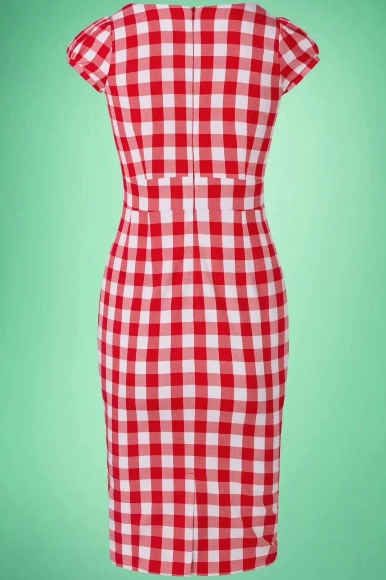 Be ”The Girl On The Go” In Deze Virginia Pencil Dress In Red And White Gingham, Uit De Nieuwe ‘summer Breeze Baby’ Collectie Van Glamour Bunny! Het Is Niet Moeilijk Om Verliefd Te Worden Op Virginia… Op Het Eerste Gezichtlijkt Ze Misschien Schattig, Maar Ze Kust Je Rondingen Voor Een Ware Bombshelllook, Oh La La! Ze Is Een Echte Retro Cutie Met Haar Korte Pofmouwtjes En Prachtigesweetheart Halslijn, Die Voorzien Is Van Een Drawstring Voor Een Sexy Decolleté. Uitgevoerd In Eenrood/Witte Stof Die Licht Stretcht Met Een Prachtig Gingham Patroontje. Next Stop: Sunset Boulevard! 😉