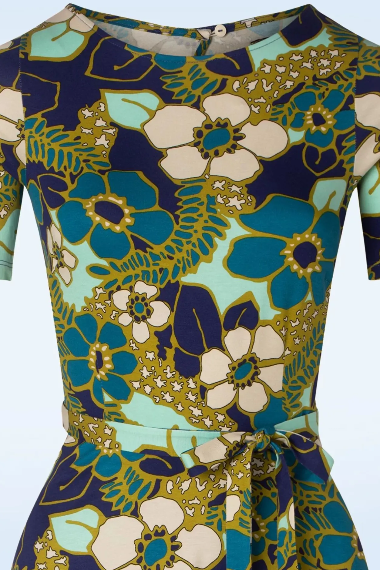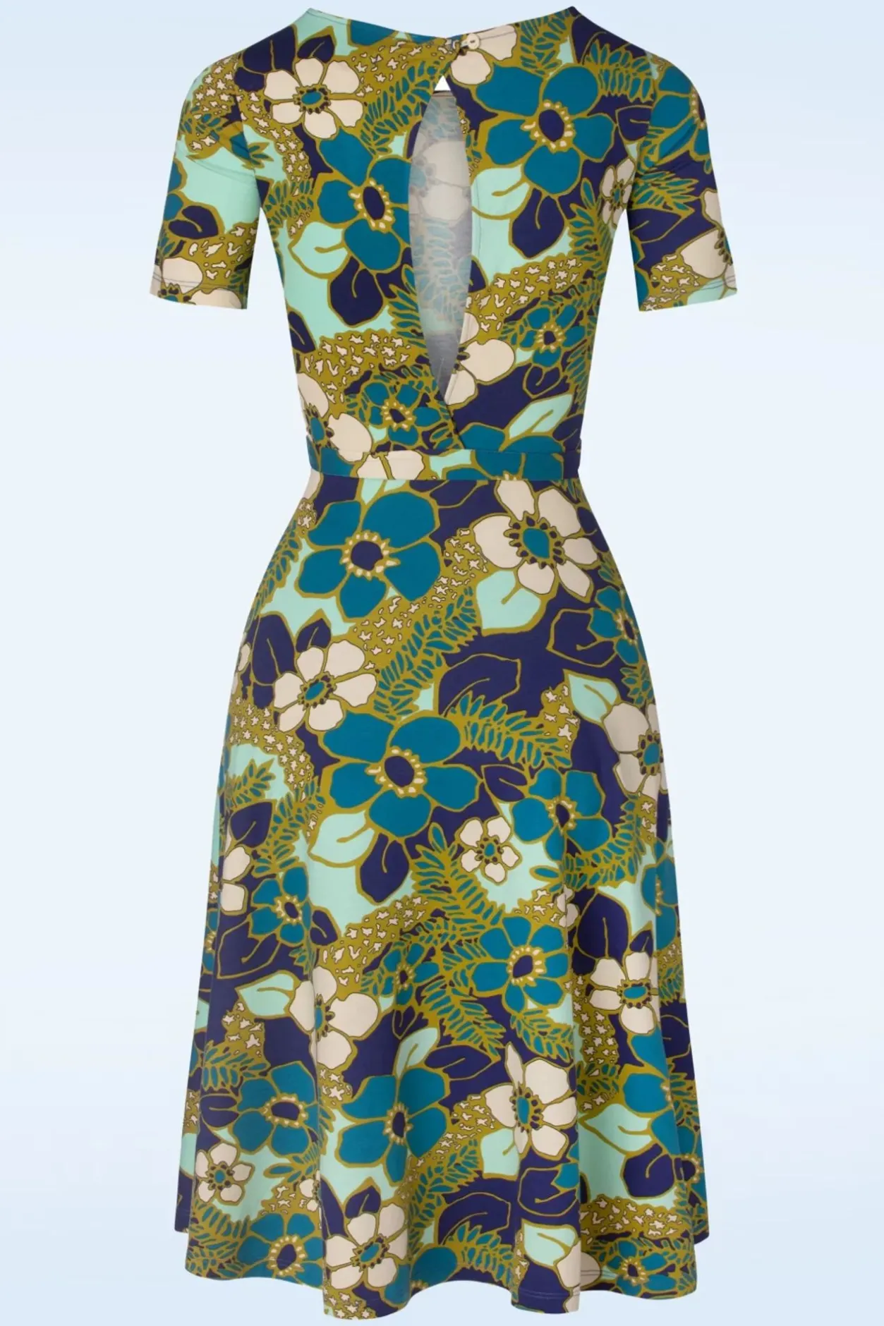 Al Zin In Zonnige Dagen? Met Deze Betty Party Dress Selena In Deep Blue Ben Jij In Ieder Geval Goed Voorbereid! Met Haar Ronde Halslijn, Korte Mouwen, Flatterende Key-Hole Rug En Kleurrijke Bloemprint Laat Ze Ieder Hartje Sneller Kloppen. Ze Geeft Je Een Prachtig Silhouet Dankzij De Afneembare Strikband In De Taille. Uitgevoerd In Een Soepele En Stretchy, Diepblauwe Ecovero Viscosemix Met Een Geweldige Retro Bloemenprint. Heeft Ze Jouw Hartje Ook Weten Te Veroveren? 😉