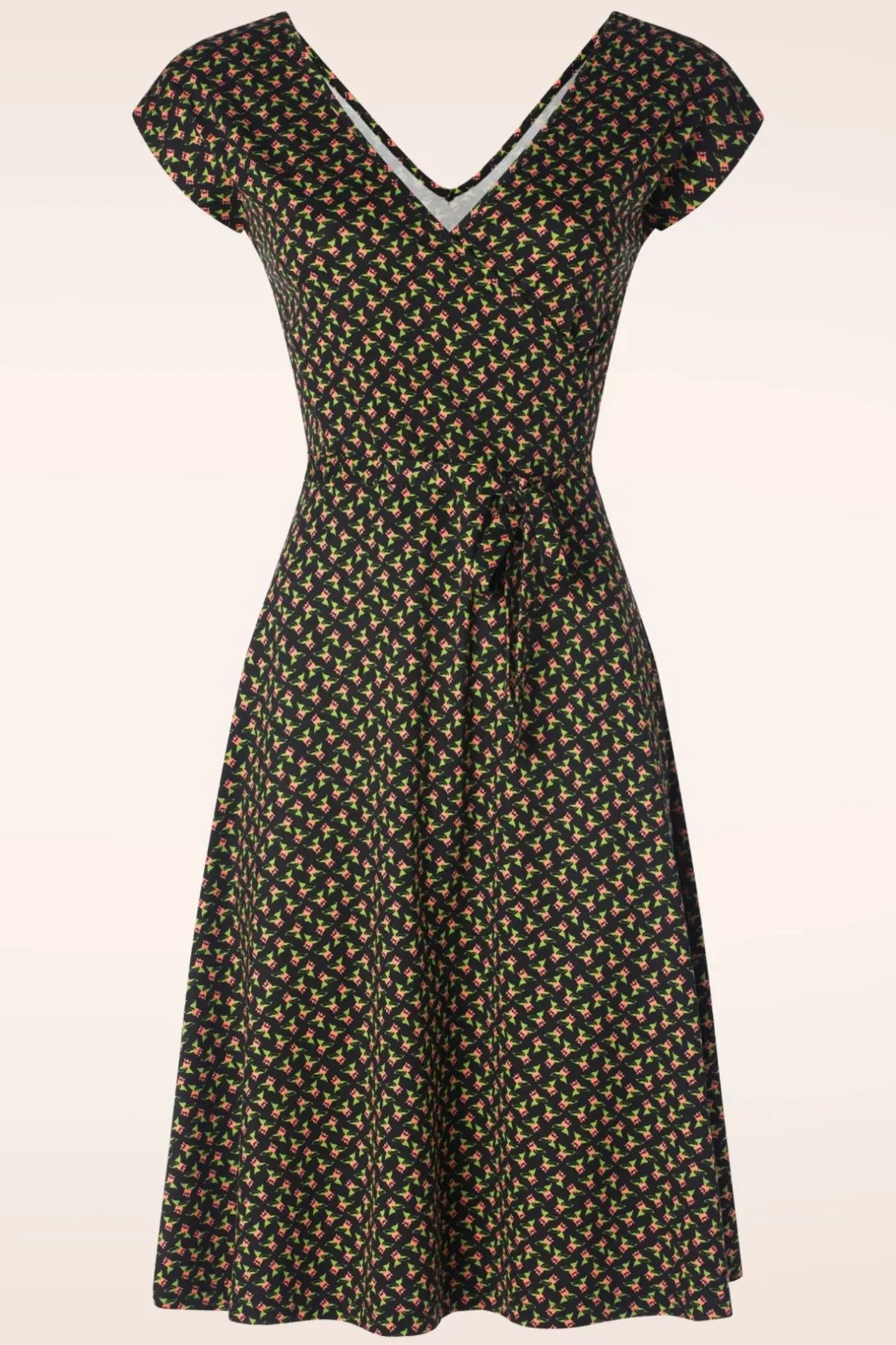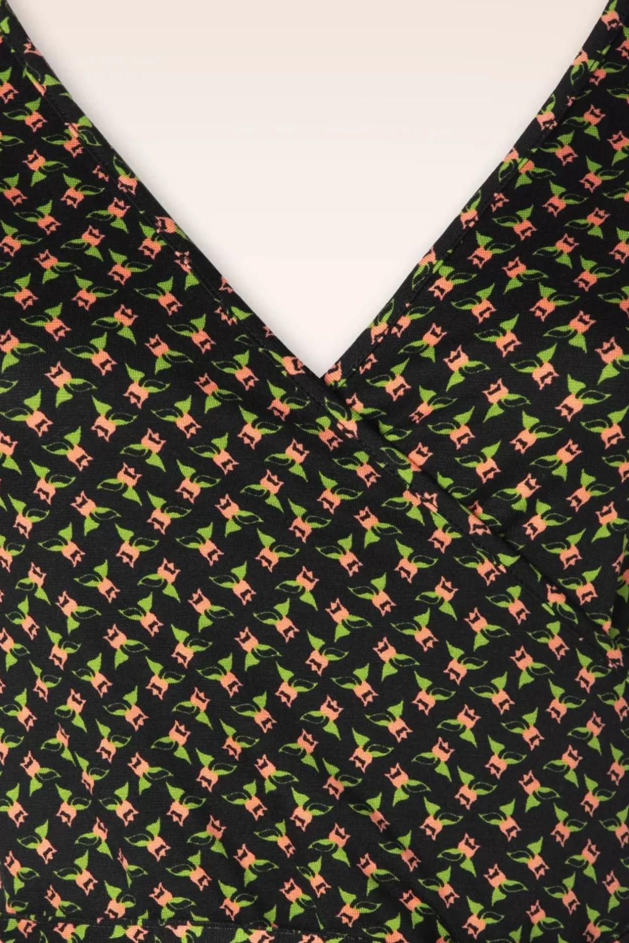 Verliefd Met Een Hoofdletter V! Want Mira Is Voorzien Van Een Prachtige V-Hals Met Vaste Overslag Maar Is Ook Op De Rug Uitgesneden In Een Lage V. Daarnaast Is Ze Uitgevoerd In Een Soepele En Stretchy, Zwarte Ecovero Stof Met Een Schattige All-Over Bloemenprint.