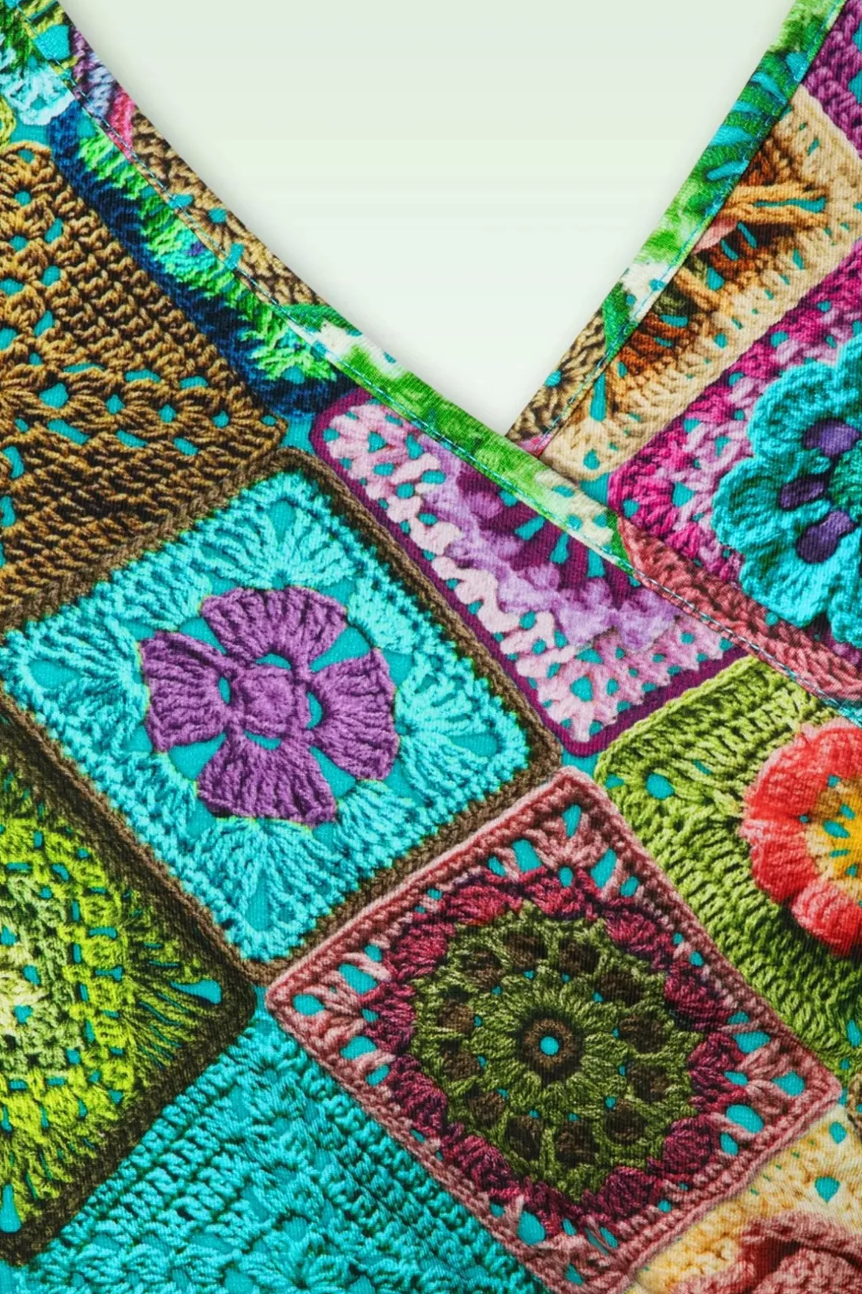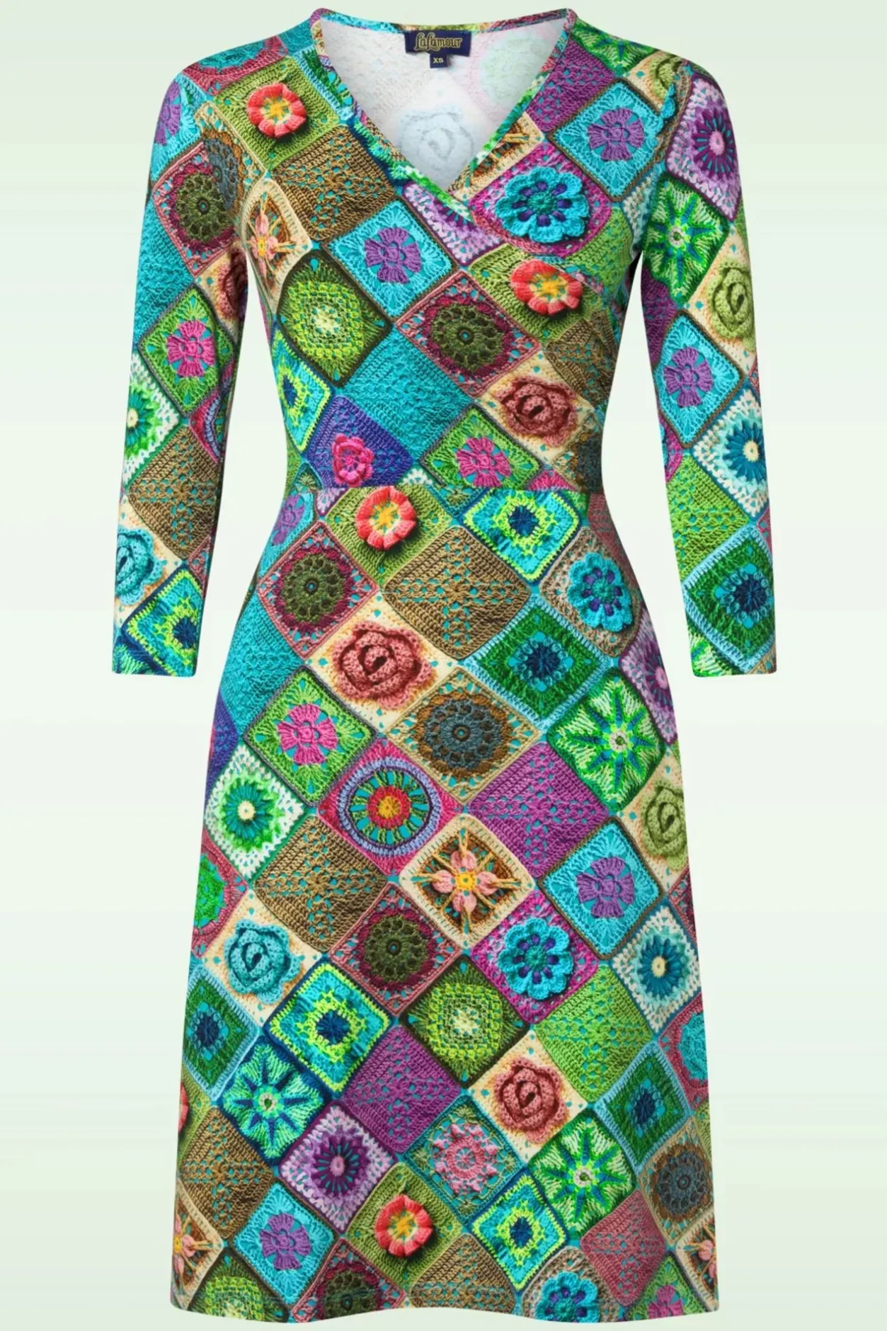Ga Kleurrijk De Zonnige Dagen Tegemoet Met Deze Classic Cross Dress In Granny Pastel! Dit Speelse A-Lijntje Heeft 3/4 Mouwen En Een Mooie, Vaste Overslag… Maar De Echte Eye-Catcher Is Natuurlijk De Prachtige, Kleurrijke Crochet Patchwork Print. Ze Is Uitgevoerd In Een Soepele En Stretchy Bio Katoenmix Die Heerlijk Luchtig Draagt. ”Live A Colourful Life!”
