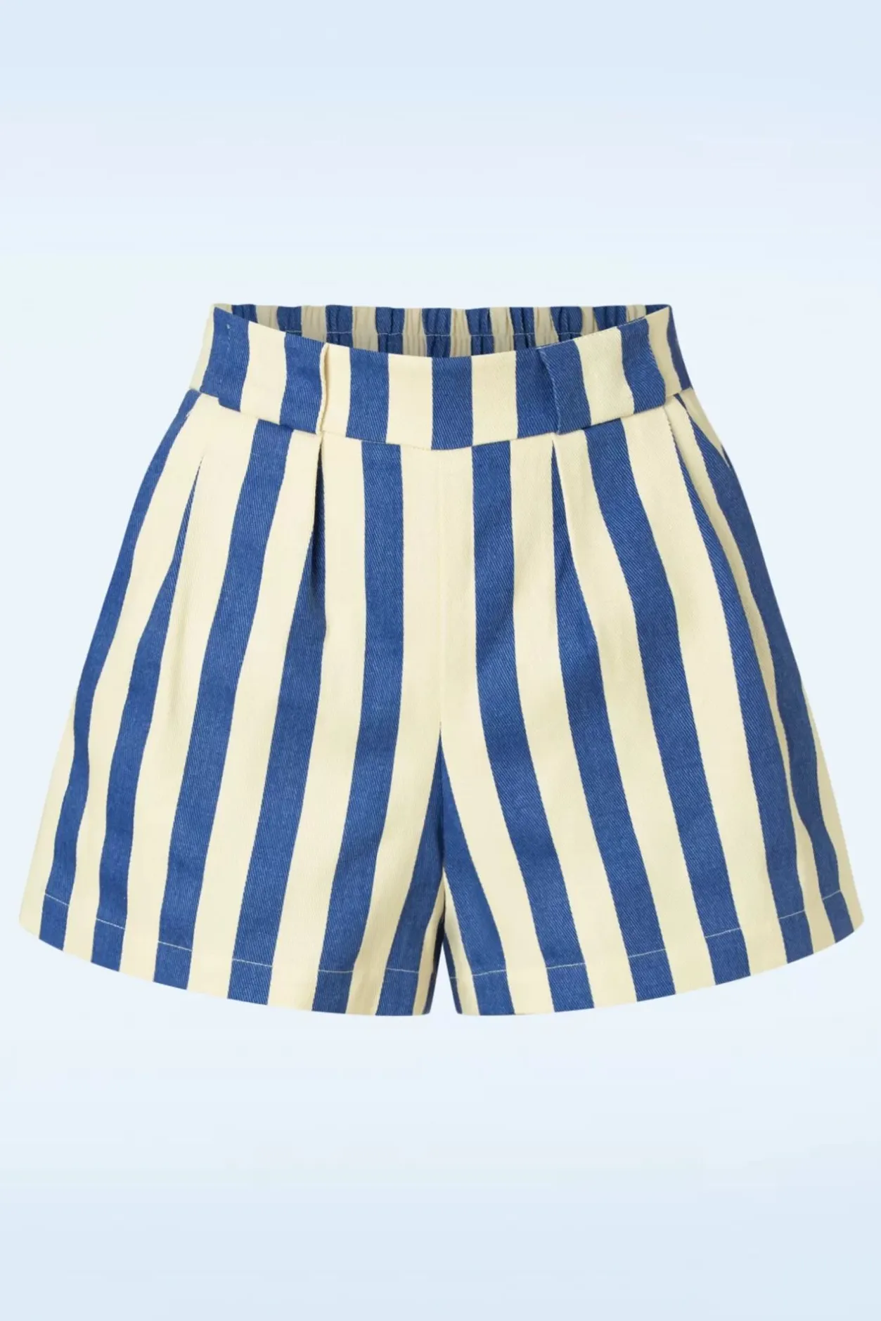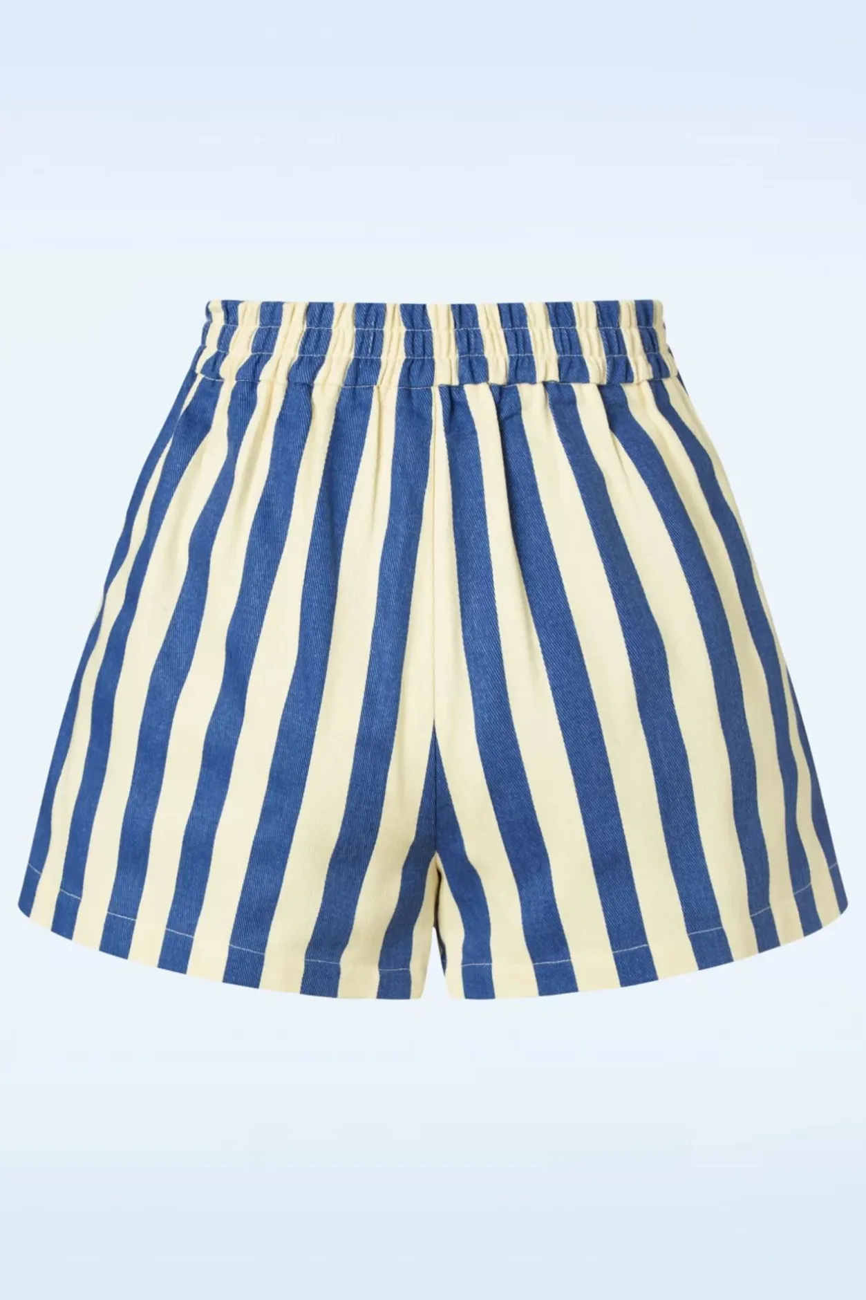 ”All Aboard!” Show Je Beentjes In Deze Speelse Shorts! Uitgevoerd In Een Stevige Maar Luchtige, Katoen (Stretcht Niet!) Met Een Klassieke Streepjesprint In Blauw En Gebroken Wit.