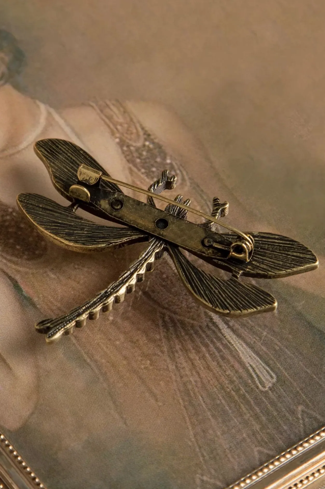 ”Dragonflies Are Kisses From Heaven!” Deze Sierlijke, Art Deco Inspired Broche Is Uitgevoerd In Antiek Goudkleurig Metaal Met Prachtige Strass Steentjes En Mintgroen/Licht Blauw Geëmailleerde Vleugels.