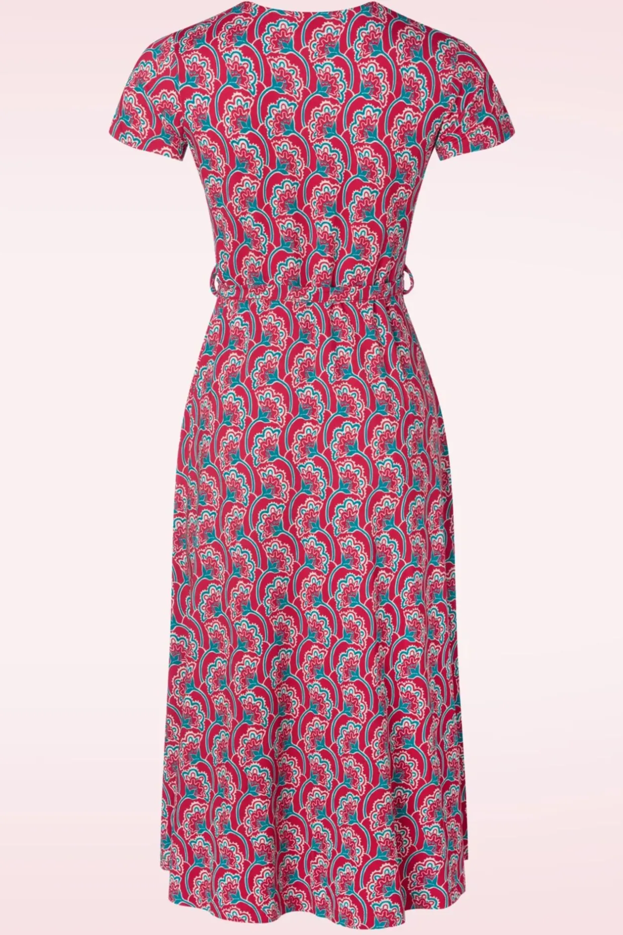Nieuwe Lente/Zomercollectie ~ “Comfy And Cute, Just The Way We Like It!” Deze Midi Beauty Is Uitgevoerd In Een Soepel Vallende, Stretchy, Donkerrode Ecovero Viscosemix Die Heerlijk Draagt En Voorzien Is Van Een Bloemenprint In Wit En Teal.