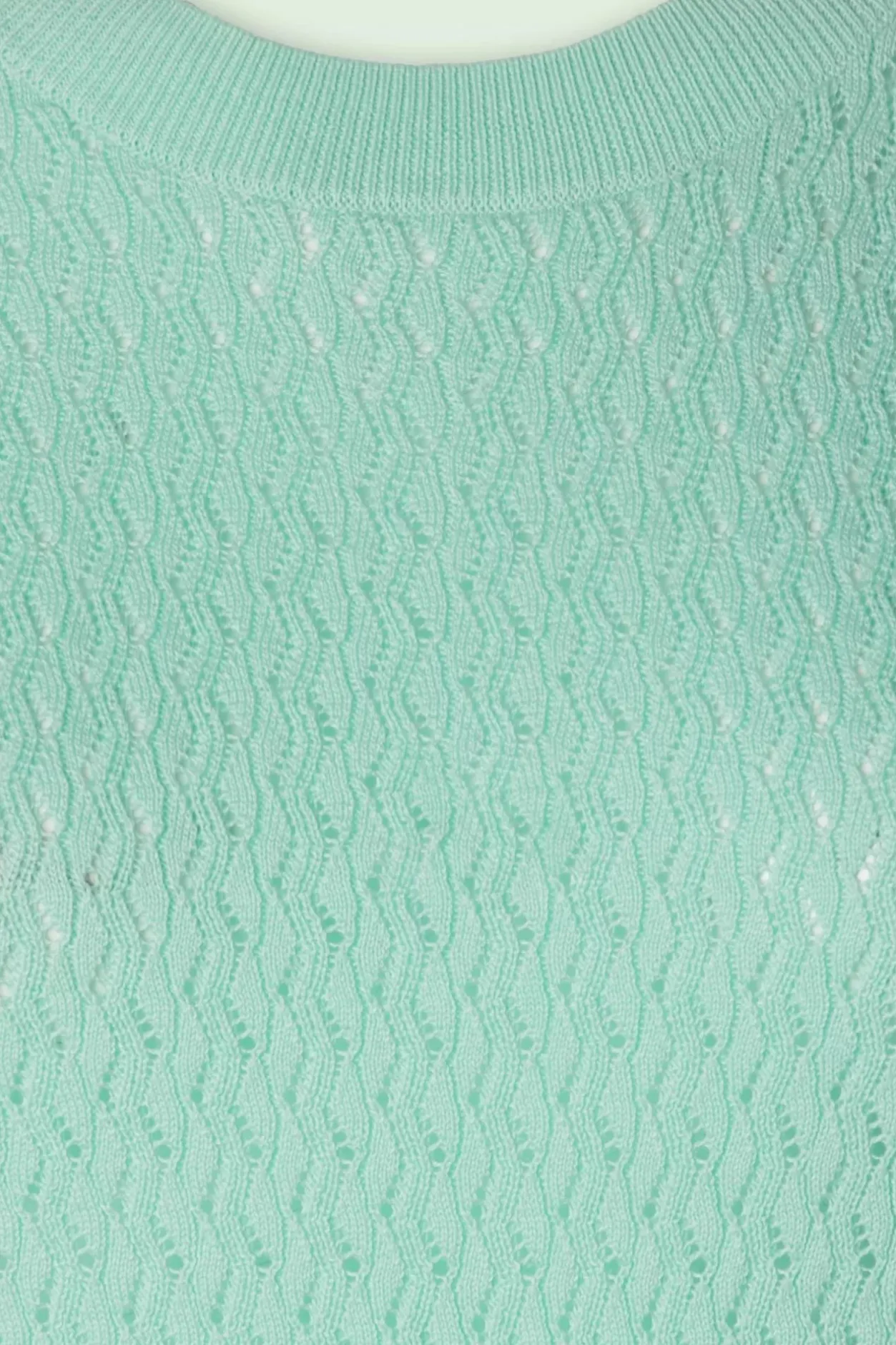 Nieuwe Lente/Zomercollectie ~ We Love Knitwear! Lina Draagt Heerlijk Cozy Dankzij Haar Soepele, Fijngebreide, Mintkleurige Tencel-/Katoenmix Met Opengewerkt Patroon.