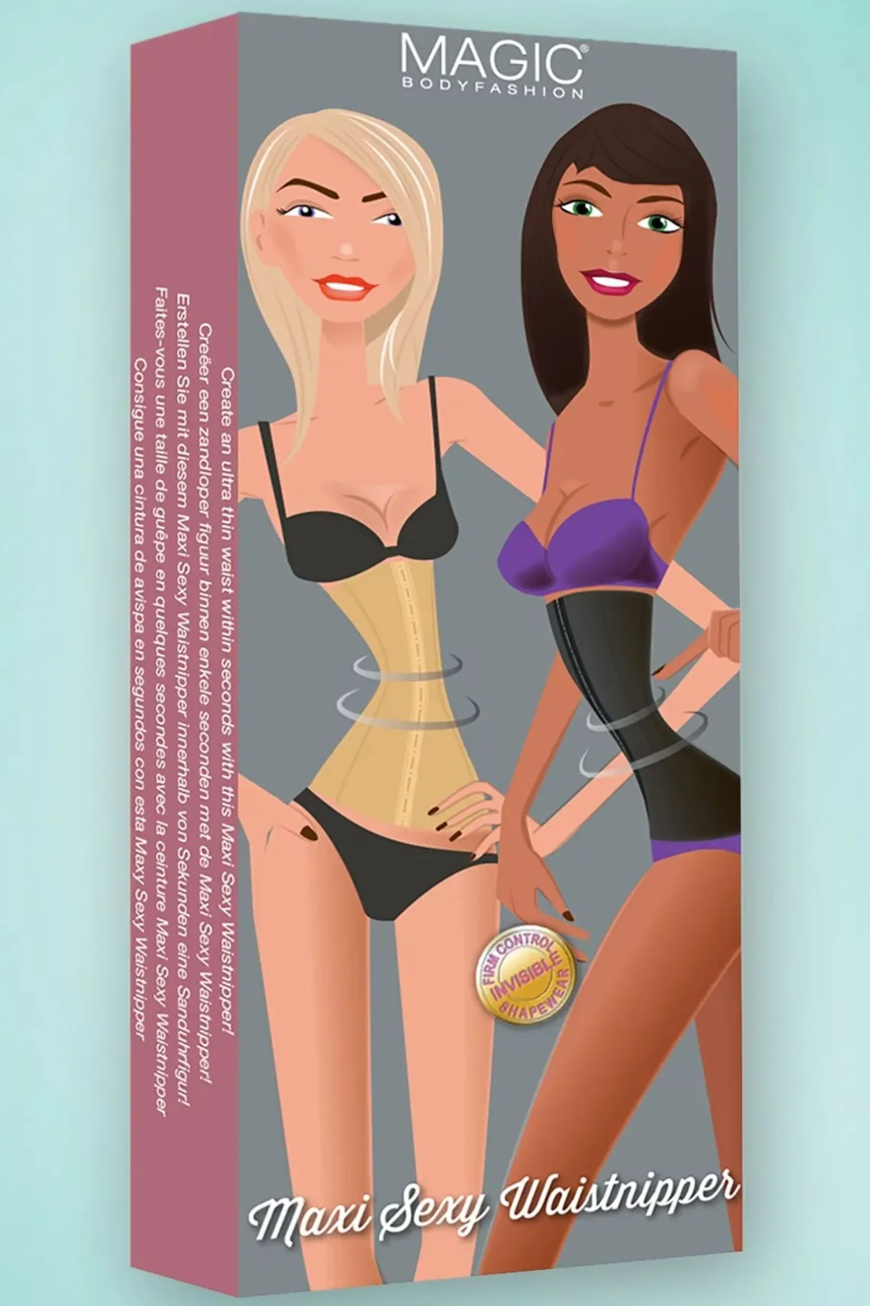 Creëer Een Zandloper Silhouet In Slechts Enkele Seconden Met Deze Maxi Sexy Waistnipper In Latte! Magic Bodyfashion, Het Merk Dat Bekend Staat Om Haar Perfecte Pasvorm, Hoge Draagcomfort En Uniek Is In Het Bieden Van Jouw Body Solution! Deze Comfortabele Waistnipper Met Flexibele Baleinen Zorgt Voor Een Slanke Wespentaille, Houdt Perfect In En Geeft Tegelijkertijd Steun Aan De Rug. Gemaakt Van Een Stevig En Glad Nudekleurig Stofje En Een Powernet Voering Voor Maximale Correctie. ”Anyone Can Have An Hourglass Silhouette… Some Just Contain A Little More Sand” 😉