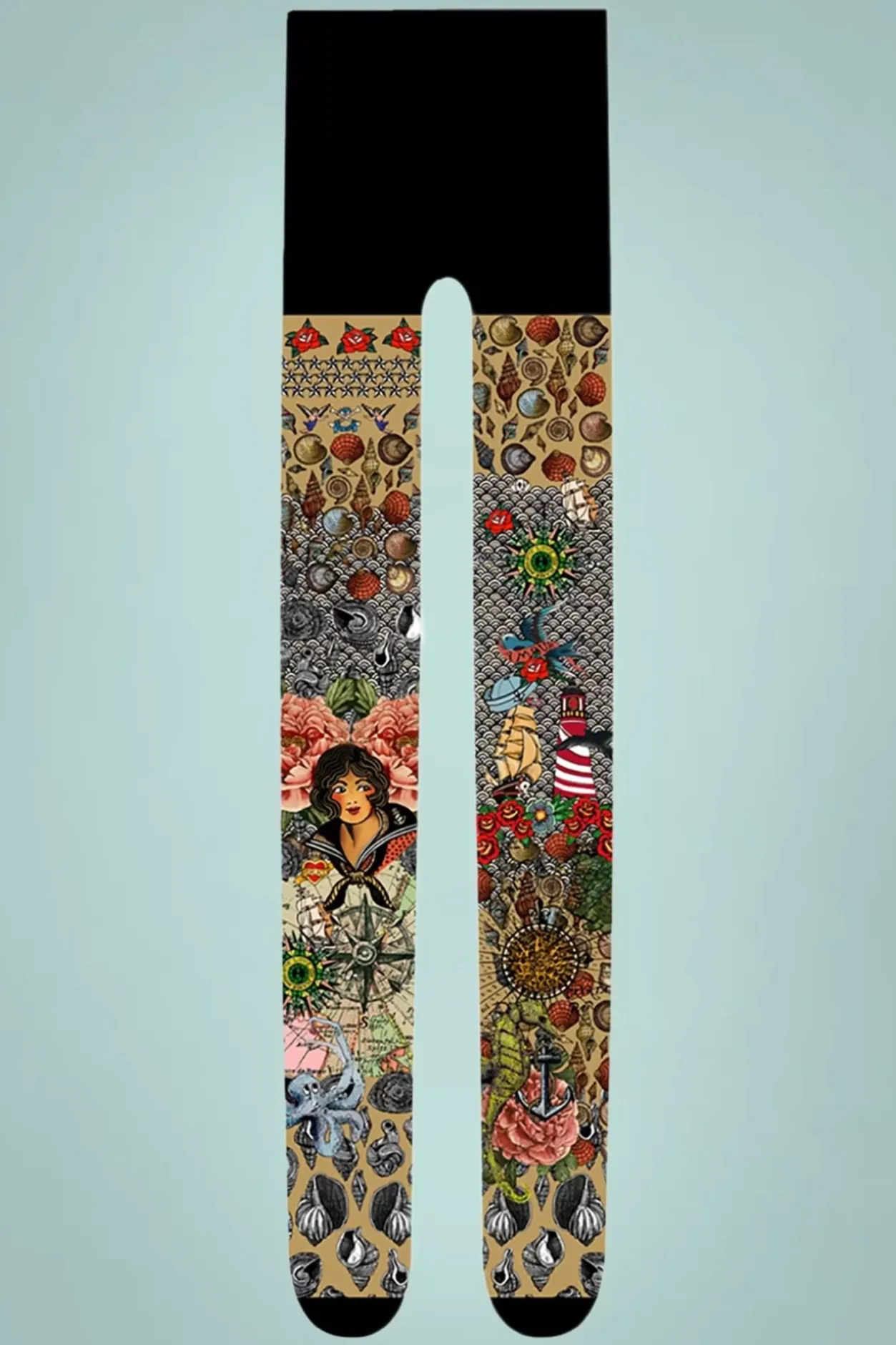 Ze Worden Met Liefde En Passie Ontworpen En Bedrukt In Een Atelier In De Buurt Van Lyon En Zijn Dan Ook Echte Kunstwerkjes Aan Je Benen! Deze 50S Rose Des Vents Panty Uit De Rockabilly Collectie Van Ons Nieuwe Merk Marie Antoilette Hebben Een Kleurrijke, Nautische Retro Print, Zitten Heerlijk Comfortabel Om Je Benen En Stretchen Goed Mee. De Koers Is Al Bepaald, Deze Panty’s Komen Rechtstreeks Jouw Kant Op Gevaren!