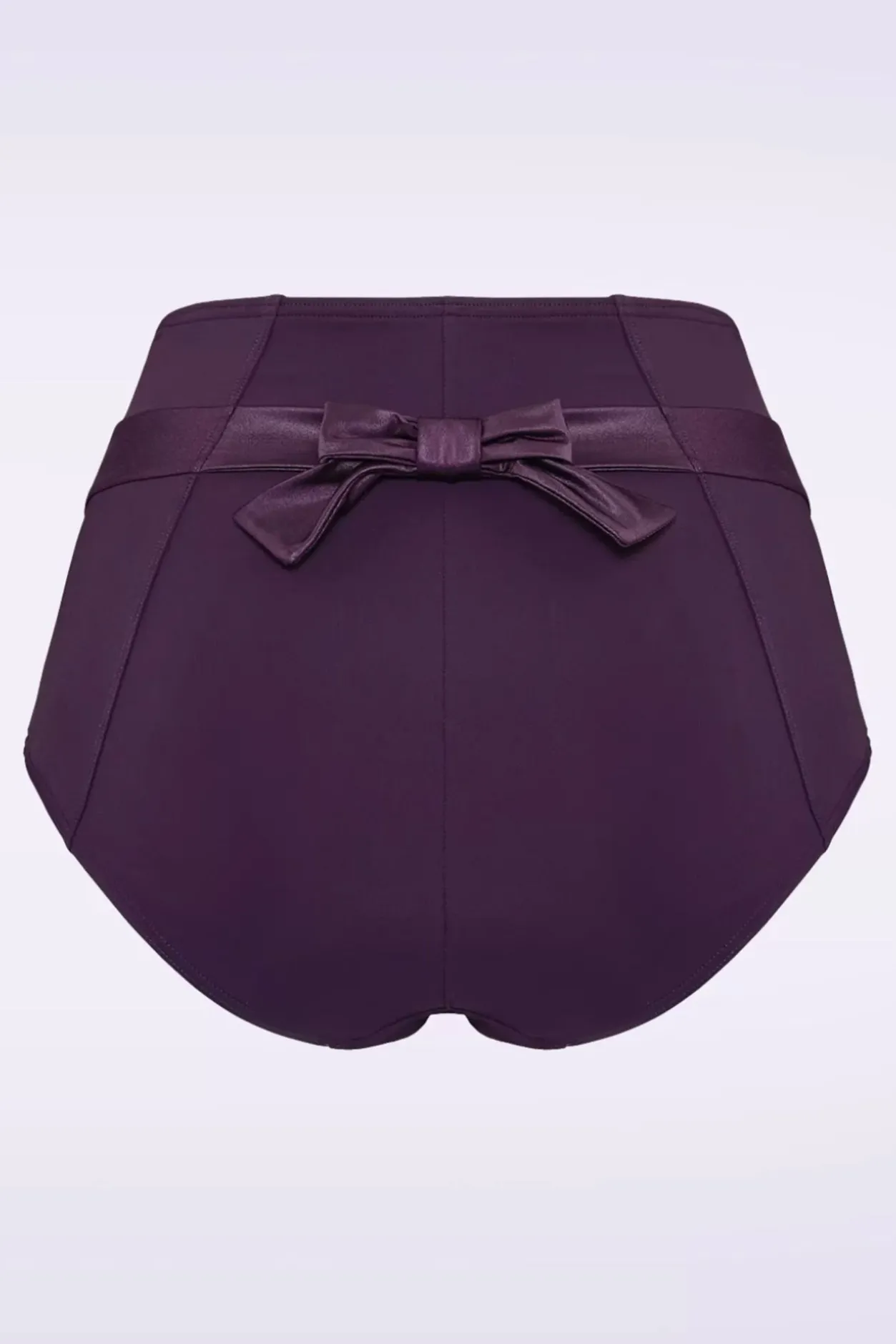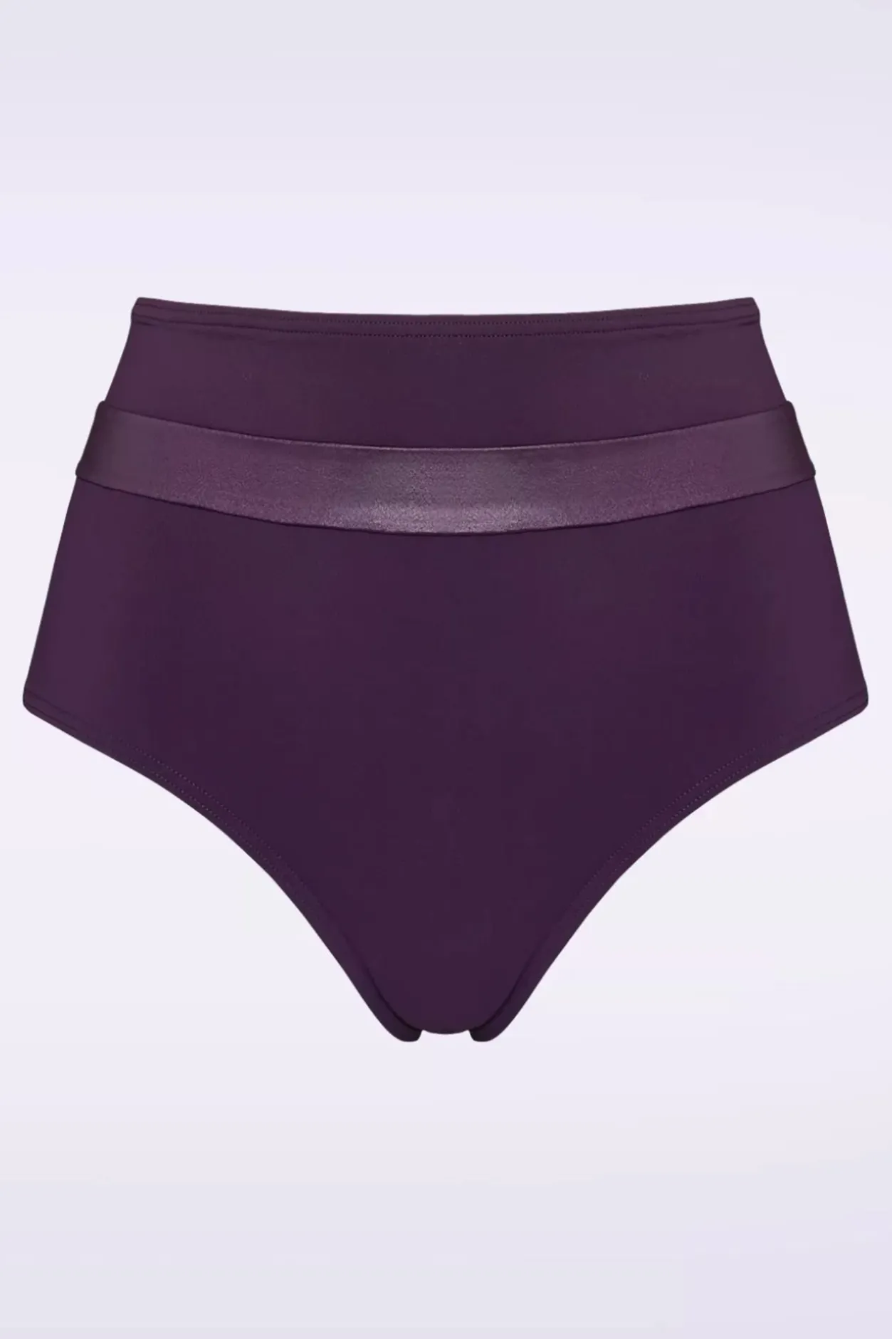 ”The Beach Will Be Your Runway This Summer!” Vergeet Die ‘Flashing Lights’… Zon, Zee En Strand Is Alles Wat Jij Nodig Hebt Om Te Shinen In Deze Cache Coeur High Waist Briefs In Deep Purple! De Dieppaarse Matte Stof Contrasteert Met De Glanzende Paarse Band En Geeft Deze High Waist Bikinibroek Een Sensuele, Luxueuze Uitstraling Terwijl Het Strikje Aan De Achterkant Er Een Speelse Touch Aan Geeft. De Hoge Taille Bedekt Je Onderbuik En Zorgt Tegelijkertijd Voor Een Prachtig Zandloper Silhouet… Oh La La! Uitgevoerd In Een Luxe, Dubbele En Gerecyclede Stof Die Heerlijk Draagt En Perfect Aansluit. Vergeet Vooral Niet Sensueel Over Je Schouder Te Kijken Als Je Van Je Strandbedje Naar De Zee Loopt… Geef Het Publiek Wat Ze Willen! 😉