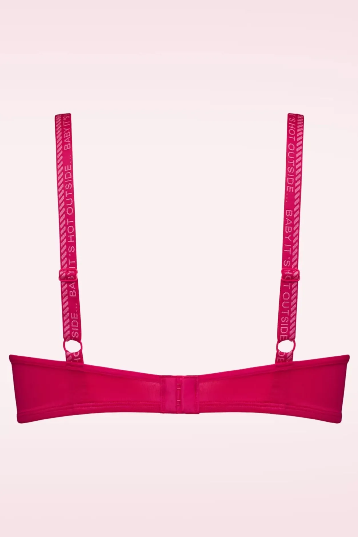 ‘Dare To Be Seen’ In Deze Balconette Bh! Uitgevoerd In Een Roodroze, Glanzende Microvezel Stof, Voorzien Van Het Iconische Lijnenspel Boven De Cups Die Je Rondingen Op Sublieme Wijze Omlijst! Marlies Heeft Zich Bij Het Ontwerpen Van Deze Bh Laten Inspireren Door De Glorieuze Notre Dame-Kathedraal. Als Ode Aan Haar ‘Gardenista’ Collectie Plaatste Ze Een Goudkleurige Tuinvork Tussen De Cups En Als Finishing Touch Heeft Ze De Woorden ”Baby It’s Hot Outside” Laten Weven In De Schouderbandjes.
