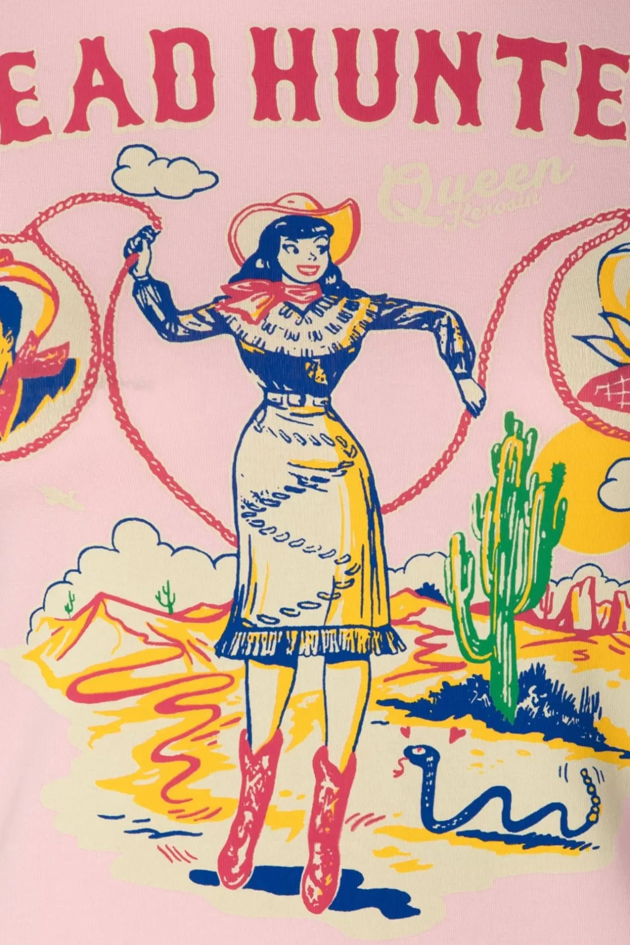 Nieuwe Lente/Zomercollectie ~ “Trouble In Town? Call The Head Hunter Queen!” Dit T-Shirt Met Een Te Leuke Print Is Uitgevoerd In Een Heerlijk Zachte En Stretchy, Lichtroze Katoenmix Die Een Genot Is Om Te Dragen.