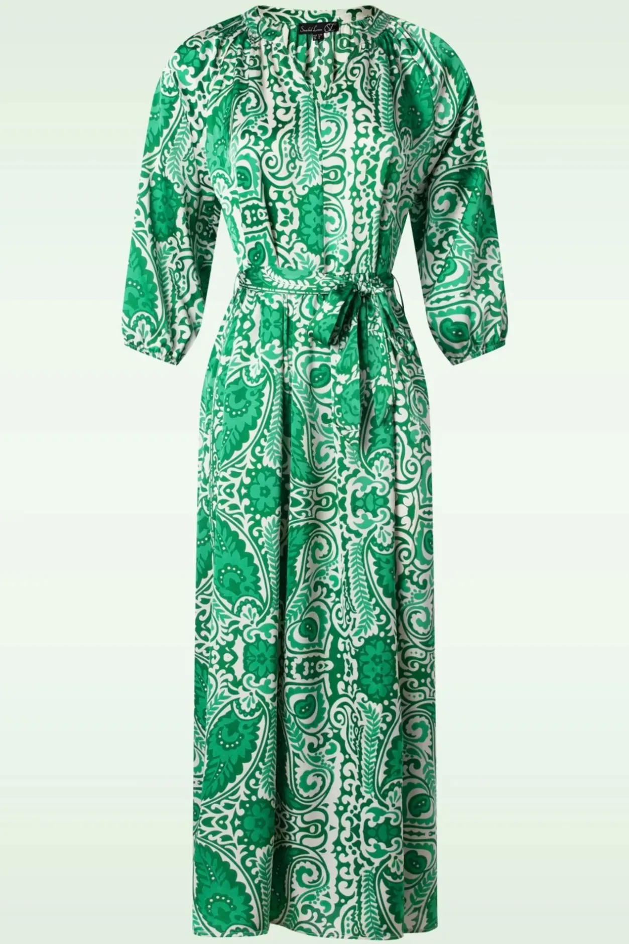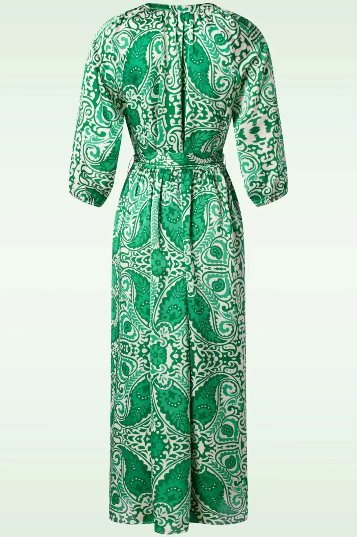 ”If You Like It, Wear It!” Deze Beauty Is Uitgevoerd In Een Soepel, Glad En Glanzend Gebroken Wit Satijnachtig Stofje, Voorzien Van Een Groene Paisley Print.