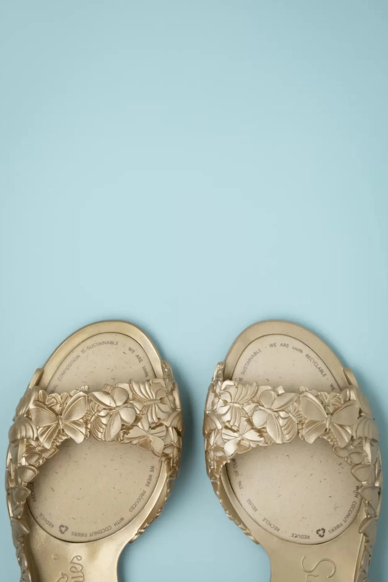 ”What I Stand For, Is What I Stand On!” Een Groene, Bewuste Keuze Maken Zag Er Nog Nooit Zo Leuk Uit! Deze Flexi Butterfly Flipflop Sandals In Gold Zijn Gemaakt Om Verschillende Weersomstandigheden Te Trotseren En Extreem Flexibel. Ze Zijn Gemakkelijk Aan En Uit Te Trekken, Zweet Krijgt Geen Kans, Ze Ruiken Lekker En Voelen Goed Aan. Bovendien Zijn Ze Voorzien Van Een Textuurzool Om Ongelukken Te Voorkomen En Een Prachtig Ontwerp Voorzien Van Vlinders. Uitgevoerd In Waterdicht, Recyclebaar, Goudkleurig Vinyl Flex Plastic En Andere Natuurlijke Bronnen (77%). En Onthoudt; ”There Is No Planet B!”