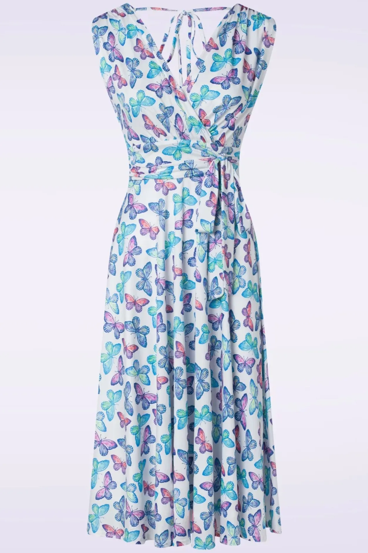 Nieuwe Collectie ~ Wanneer Je Jane Aantrekt Weet Je Het Meteen; Ze Is Perfect Voor De Zomer! Uitgevoerd In Een Glad En Soepel, Licht Glanzend, Stretchy, Wit Slinky Stofje Met Een Kleurrijke Vlinderprint, Dat Garant Staat Voor Veel Kreukvrij Draagplezier.