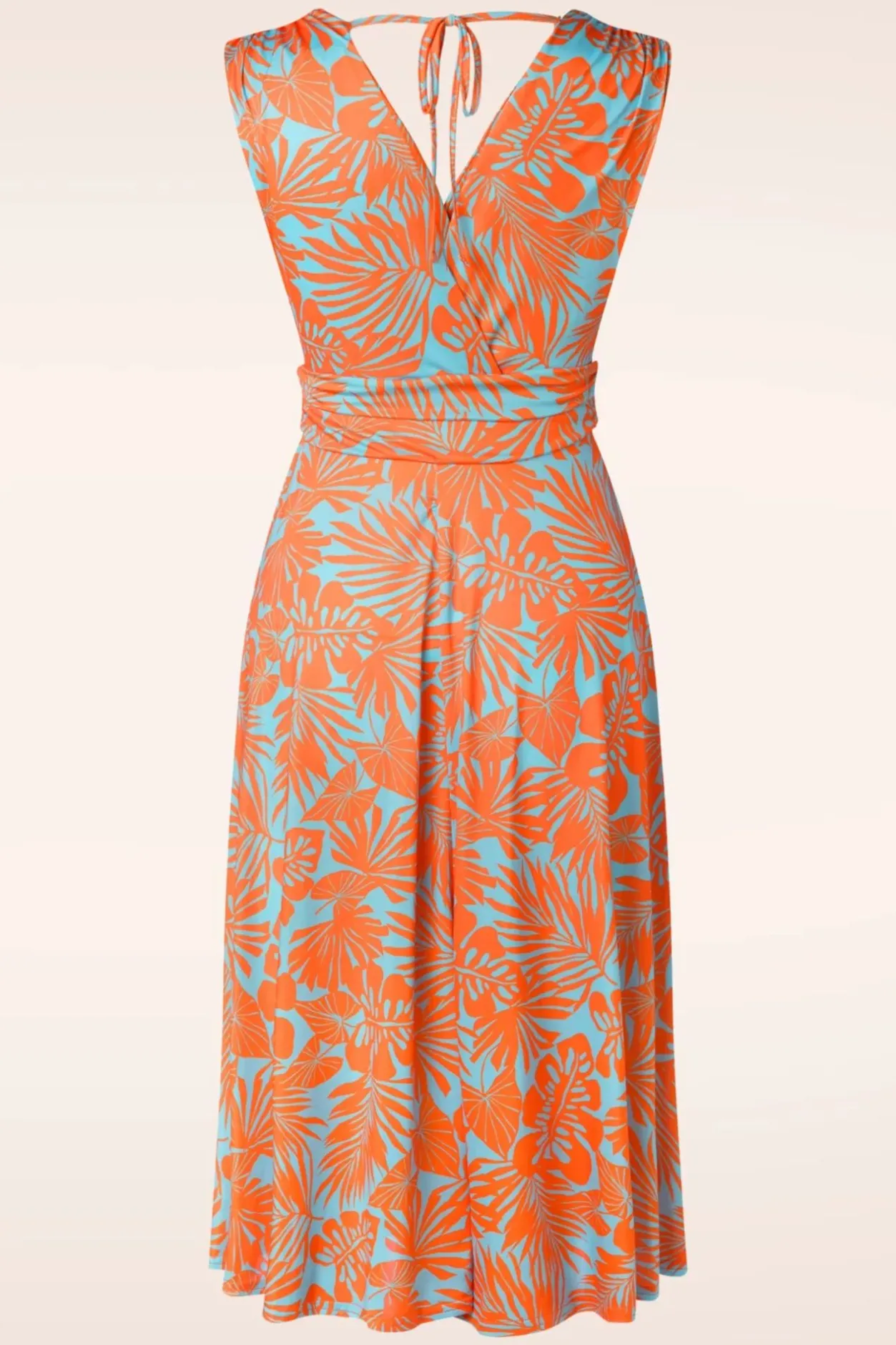 Nieuwe Collectie ~ Wanneer Je Jane Aantrekt Weet Je Het Meteen; Ze Is Perfect Voor De Zomer! Uitgevoerd In Een Glad En Soepel, Licht Glanzend, Stretchy, Lichtblauw Slinky Stofje Met Een Oranje Bladerenprint, Dat Garant Staat Voor Veel Kreukvrij Draagplezier.