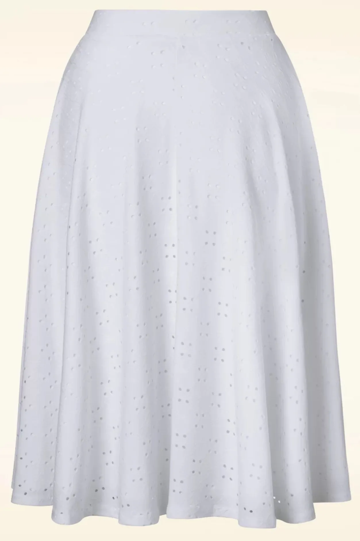 Iedere Dag Is Rokjes Dag! Deze Zwierige Swing Cutie Is Uitgevoerd In Een Soepele En Stretchy, Witte Broderie Stof En Is Geheel Gevoerd Waardoor Ze Niet Doorschijnt.