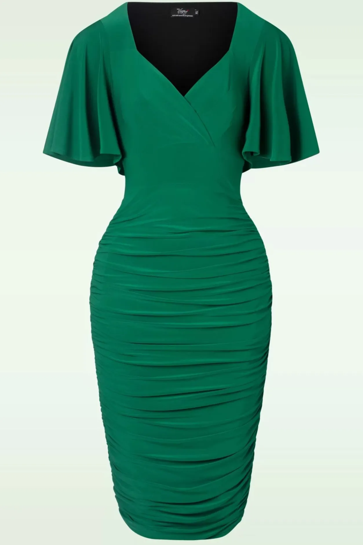 ”Prepare To Turn Heads” Wanneer Je The Eugenie Butterfly Pencil Dress In Green Draagt. Dit Seizoen Hebben Onze Eigen In-House Ontwerpers Zich Laten Inspireren Door Het Thema; ‘Love Is Like A Wild Flower!’ Wilde Bloemen Zijn Een Assemblage Van Verschillende Gevoelens En Texturen, Net Als Deze Nieuwe Lente/Zomer Collectie! Eugenie Heeft Prachtige 1/2 Butterfly Sleeves En Een Elegante Vaste Overslag Top. Je Lichaam Wordt Op Sublieme Wijze Geaccentueerd Door De Corrigerende Bengaline Shapewear. Hier Overheen Is Een Geplooide Stof Gedrapeerd Die Moeiteloos Alle Probleemzones Camoufleert. Uitgevoerd In Een Gladde En Soepele, Stretchy Groene Stof Voor Een ‘Divalicious’ Fit Die Nauw Aansluit Zonder Daarbij Af Te Tekenen. En Onthoudt Diva’s: ”The Joy Of Dressing Is An Art… And You Are The Masterpiece!”