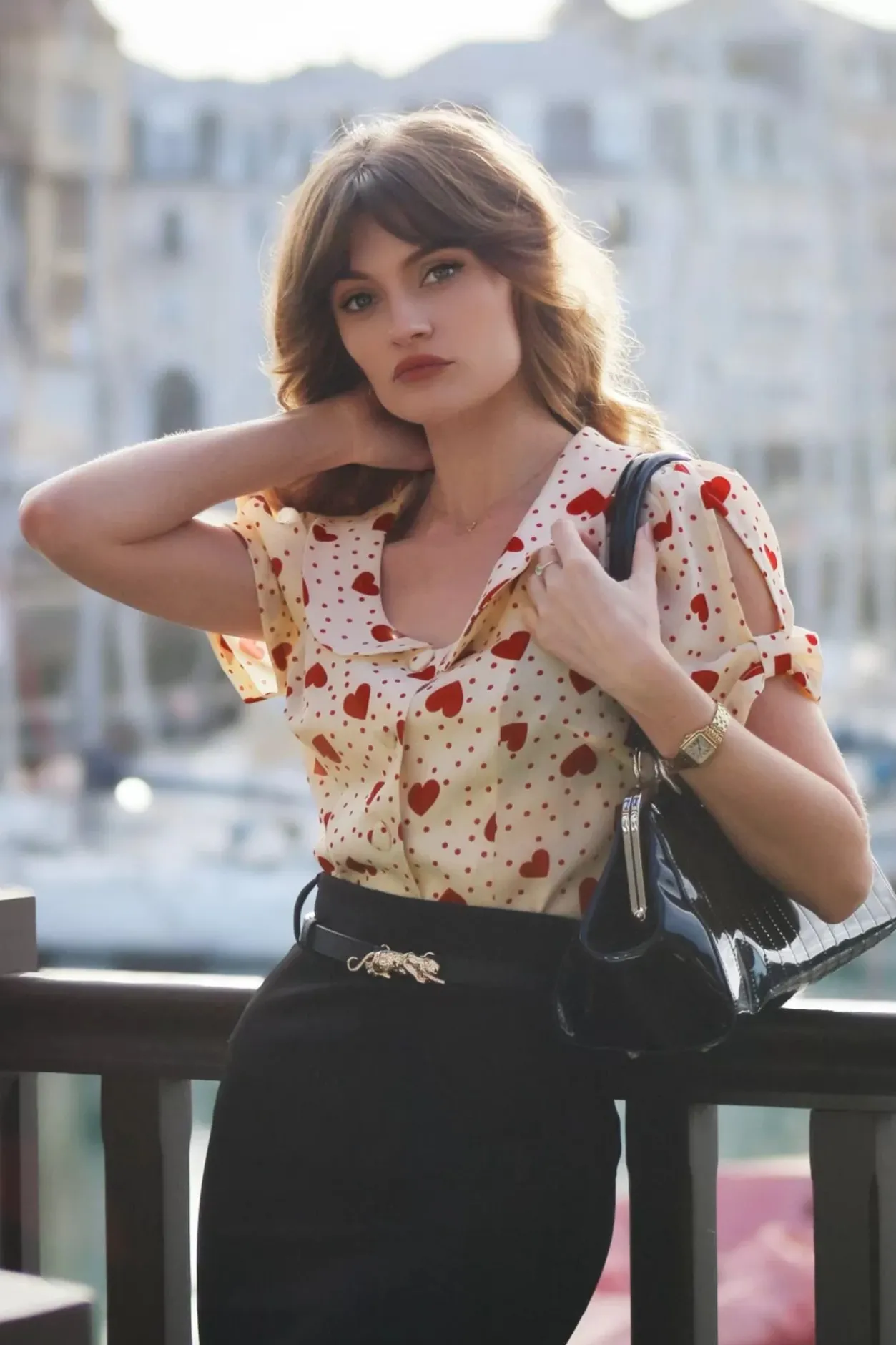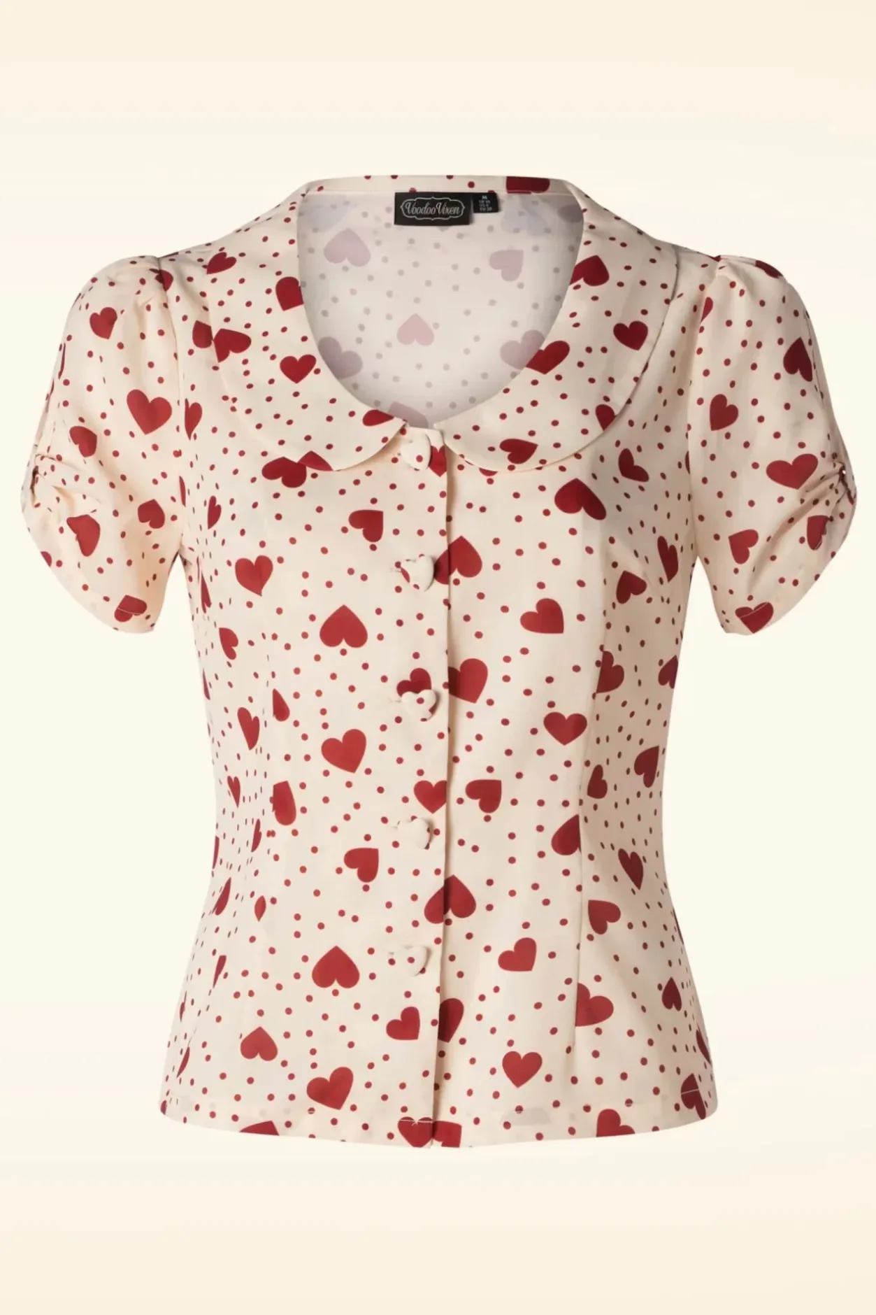”Love Is My Vibe!” Deze Cutie Is Uitgevoerd In Een Soepel Vallende, Gladde, Crème Kleurige Stof (Stretcht Niet) Voorzien Van Rode Polka Dots En Hartjes <3.
