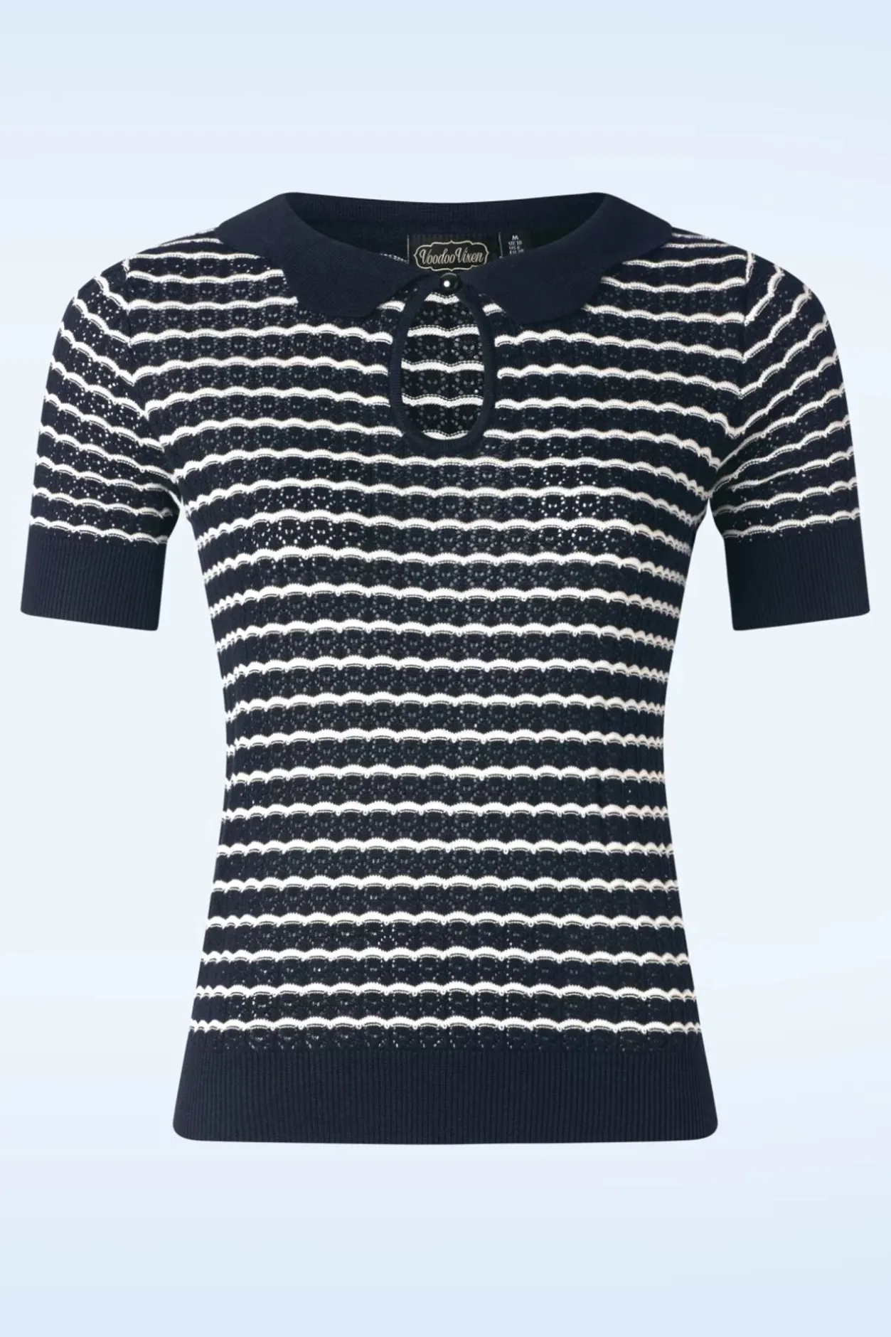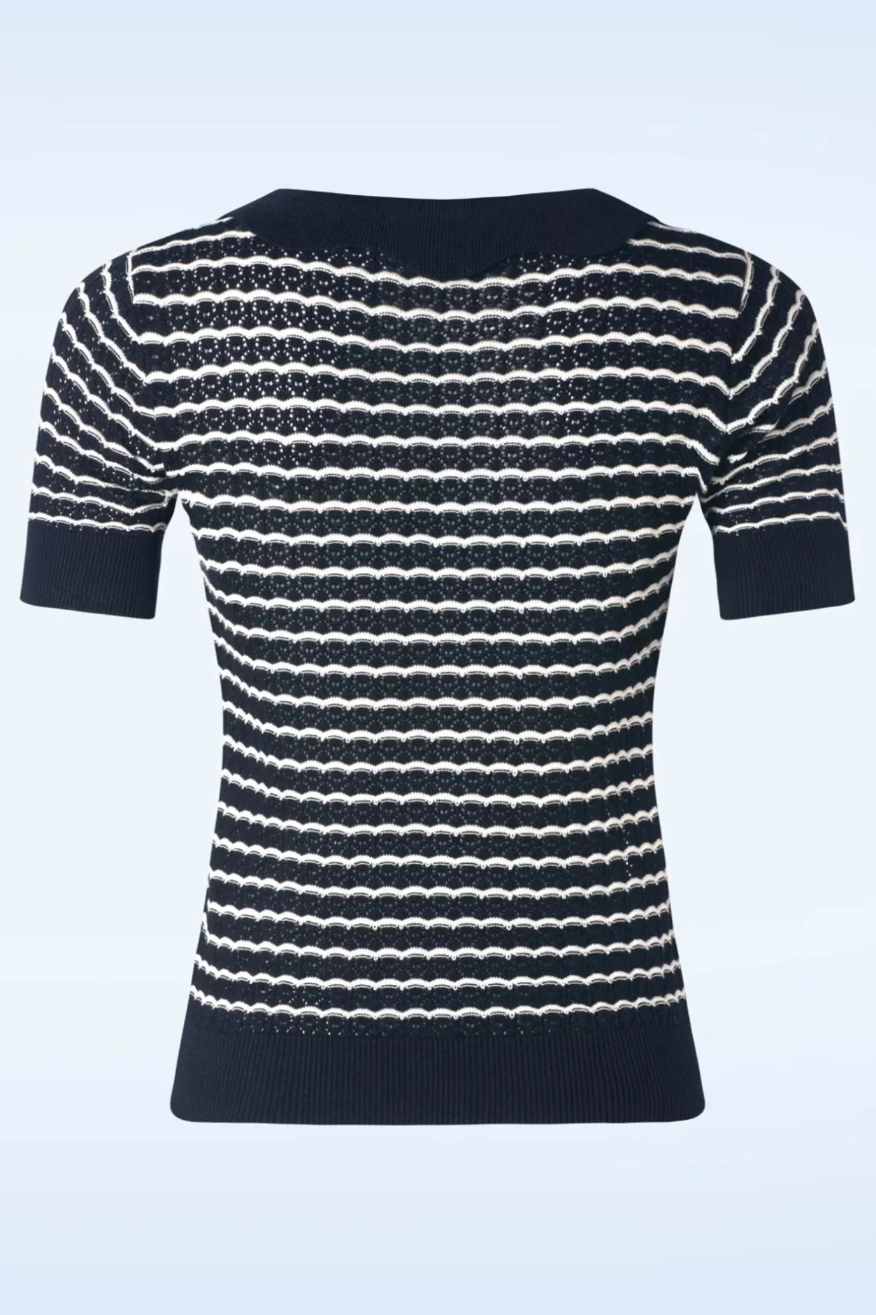 ”Cuteness Overload!” Dit Schattige Truitje Is Een Genot Om Te Dragen Dankzij De Stretchy, Grof Gebreide, Marineblauwe Viscose-/Katoenmix Met Een Opengewerkt Patroon.